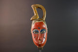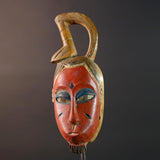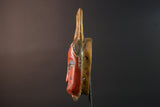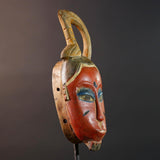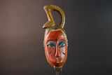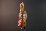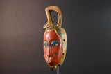 African Guro wall mask red face carved wood mask with loop crest tribal sculpture rustic African decor handmade wall hanging G5505