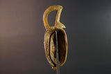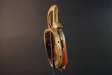 This mask originates from the Guro people of Côte d’Ivoire, known for their ornate and colorful ceremonial masks. Guro masks often represent spiritual beings and are used in dances honoring ancestors or marking rites of passage. The upward loop crest is a frequent motif symbolizing continuity and spiritual connection.