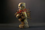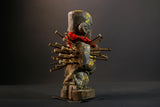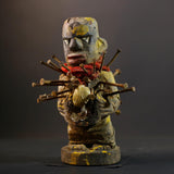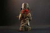 Invite powerful ancestral energy into your space with this figurine: a hand-carved Kongo Nkisi Nkonde nail fetish from Central Africa. Embedded with iron nails, bright red yarn, and a cowrie shell, this spiritual figurine commands attention and respect. Each sculptural detail—weathered wood patina, multicolor pigments, and striking nail pattern—tells a story of ritual and healing. Perfect as a tabletop display or collector’s piece, this one-of-a-kind figurine blends cultural depth with raw, evocative artistry.