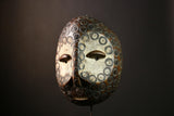 Discover Lega mask from the Democratic Republic of Congo, a true masterpiece of craftsmanship. This beautifully crafted mask showcases a soft light cream color, adorned with intricate circle-dot motifs that enhance its artistic beauty. The captivating coffee bean eyes add a unique charm, making it a perfect decor collectible for any art lover. Ideal for display in homes or galleries, this exquisite mask embodies the rich cultural heritage of the Lega people. Enhance your space with this remarkable piece that invites admiration and conversation!