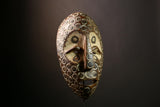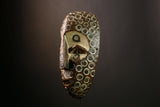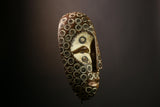 Introducing stunning Lega mask from the Democratic Republic of Congo, exemplifying exceptional craftsmanship. This exquisite mask showcases a light cream hue, adorned with intricate circle-dot patterns that enhance its artistic appeal. Its expressive coffee bean eyes add character and depth, making it a captivating statement piece. Perfect for enhancing your home decor or as a unique collectible, this Lega mask embodies the rich cultural heritage of the Congo. Celebrate your love for art with this beautifully crafted mask that invites admiration and conversation in any setting!
