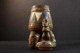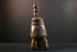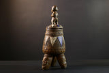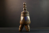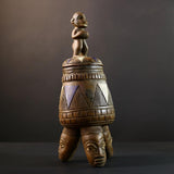 African Luba divination vessel,Tribal carved ritual container,Congo spirit figure jar,Wooden sacred storage art-G5356