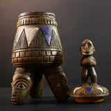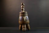 Hand-carved Luba container with figure lid and head-base support
