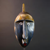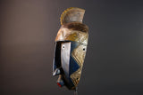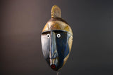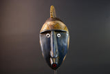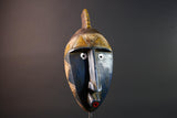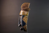 This African mask from the Bwa tribe blends angular design, symbolic geometry, and color contrast into a compact and powerful tribal wall sculpture.