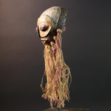 african mask pende raffia healing face carving handmade tribal sculpture spiritual wall decor west african fiber costume mask art-G5448