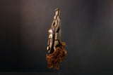 Presenting a stunning African mask, this exquisite Kpélié piece from the Senufo ethnic group beautifully showcases the vibrant artistic heritage of northern Côte d'Ivoire. Skillfully crafted by talented artisans known for their exceptional detail and harmonious designs, this mask is a true testament to Senufo artistry. At the heart of this African mask is the majestic hornbill, a bird viewed as a symbol of happiness and prosperity within the Senufo culture. This representation infuses the mask with spiritual significance, transforming it into a powerful emblem that resonates with meaning beyond mere decoration. The intricate carvings and appealing design make this piece a superb example of both Senufo and broader African artistic traditions. Imagine this remarkable African mask serving as a captivating centerpiece in your home, inspiring admiration and conversation among your guests. Its rich history and cultural significance make it an essential addition for collectors and art enthusiasts alike. Owning this Kpélié mask is more than just acquiring a decorative item; it's embracing a piece of cultural heritage that adds depth and elegance to your space. Don't miss the chance to own this exceptional African mask. Elevate your collection with this beautiful embodiment of artistry and tradition, and let the spirit of the Senufo people inspire your living environment today!