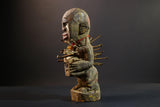 African Nkisi Nkondi Figure | Tribal Power Statue with Nails | Handcarved Fetish Figurine | Antique Voodoo Spirit Sculpture Decor-G5264