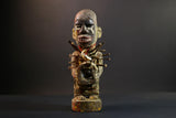 Bring powerful ancestral energy into your space with this handcarved African figurine — an authentic Nkisi Nkondi power figure from Central Africa. Covered with ritual nails and shells, this figurine symbolizes protection, justice, and spiritual connection. Perfect for collectors of tribal art, voodoo artifacts, or African sculptures, this rare piece adds deep meaning and history to any home, altar, or art gallery display.