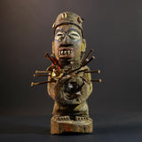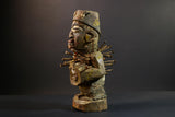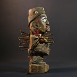 This handcarved African figurine embodies the deep spiritual power of the Nkisi Nkondi tradition. Covered in ritual nails, shells, and natural materials, this figurine served as a spiritual tool for protection, healing, and justice. Rich in meaning and cultural history, it's perfect for collectors of tribal art, voodoo artifacts, or African sculptures. Bring ancestral energy, power, and authenticity to your home or sacred space with this incredible, one-of-a-kind collectible.