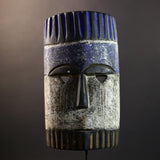 African Pende Helmet Mask, Congo Tribal Wall Art, Indigo Crown Kaolin Sculpture, Hand-Carved Wood Decor, Initiation Dance Totem-G5328