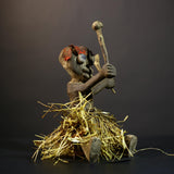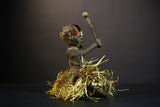 African Raffia Skirt Statue Fetish Kafigueledio Senoufo Wooden Art Piece-G4786