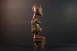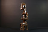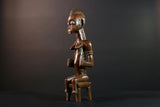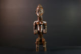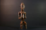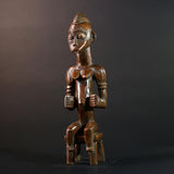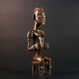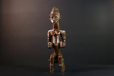 African Seated Tribal Figure Congolese Wood Ancestor Art Hand-Carved Spiritual Shrine Sculpture Decor-G5596