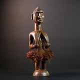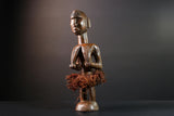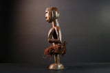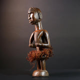 African tribal figure Congo statue carved female wood spirit art fiber skirt ethnic fertility sculpture ancestral decor gift-G5624