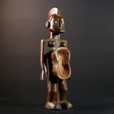 African Tribal Figure Hand Carved Wood Congo Female Sculpture Spirit Ritual Art Decor Collectible Wall Accent Traditional Object-G5595