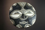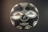 African tribal mask wall decor, Bwa sun mask from Burkina Faso, geometric spirit carving, cultural black and white wood sculpture-G5385