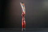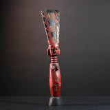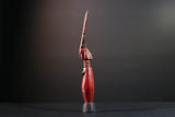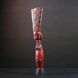 Elegant and symbolic, this tall African female sculpture features a bold red finish, stylized body, and an intricately ridged crest.