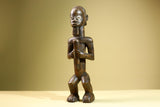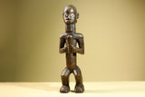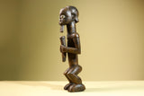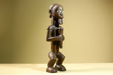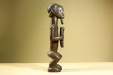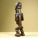 Statue – This African tribal statue depicts a male figure holding a ritual object, carved in wood with strong traditional details. It measures 45 cm (17.7") tall, 13.2 cm (5.2") wide, and 9 cm (3.5") deep. Handcrafted with expressive features and natural patina, this cultural artwork reflects West African heritage. Perfect as a collector’s item, cultural centerpiece, or unique home décor accent.