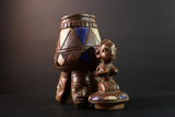 Each African tribal vessel was carved with care, often used in cultural rituals or to hold sacred substances. The bold use of color and form showcases the talent of Nigerian artisans and the significance of symmetry in ceremonial practice. With its striking design and cultural resonance, this African tribal vessel makes a powerful statement piece for collectors or interiors seeking authenticity and spirit.