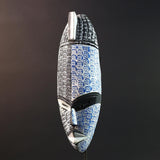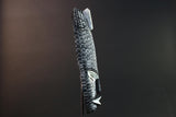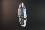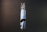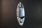 Hand-carved from wood and adorned in a bold black and blue speckled pattern, this piece evokes a powerful duality. One half represents clarity and serenity, while the other echoes night, depth, and ancestral connection. The mask’s narrow oval form, angular brows, and refined lips are classic Kwele features, modernized here with expressive color and contrast.