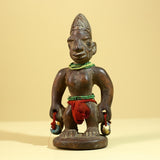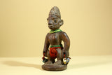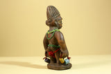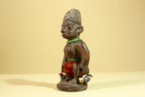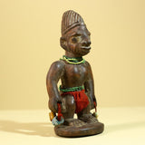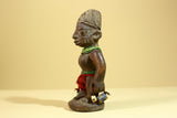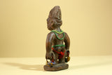 African Wooden Ibeji Figure with Beads Tribal Handmade Ritual Sculpture-G6246