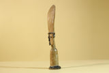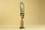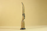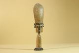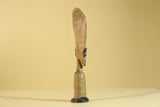 Hand-carved from solid wood, the surface displays natural patina, subtle color variation, and age-related wear that enhance its authenticity. The tall proportions and sculptural silhouette make this piece ideal as African wall art, shelf display, or a focal object in curated interiors.