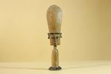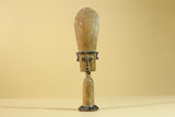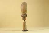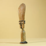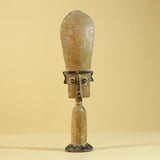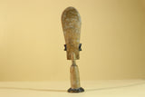 This African wooden ritual figure is a refined example of traditional tribal sculpture, defined by its elongated head, calm facial expression, and balanced vertical form. The design emphasizes spiritual symbolism and abstraction, commonly found in ceremonial African art.