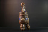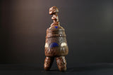 With stylized facial features and a grounded pose, this African tribal figure container is a rare example of authentic tribal artistry. Traditionally, such carved vessels were used to house ritual substances, protective charms, or symbolic items during ceremonies. This African tribal figure piece brings a compelling cultural legacy to life, ideal for collectors of ethnographic art or unique decor.