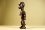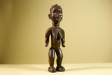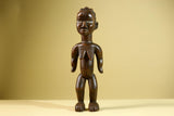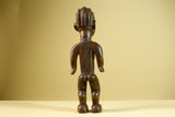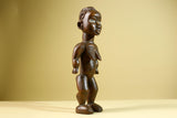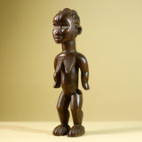 This Yoruba tribal statue from Nigeria is hand-carved in wood, featuring scarification details, Yoruba hairstyle, and symbolic fertility motifs. It measures 46.5 cm (18.3") high, 14.5 cm (5.7") wide, and 9 cm (3.5") deep. Crafted with care and cultural meaning, it is ideal for collectors, museums, or unique home décor.