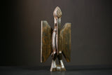 Enhance your space with this antique Senufo bird statue, a stunning symbol of tribal artistry that embodies cultural richness and craftsmanship. This wooden statue, meticulously carved, serves as both a captivating sculpture and a conversation starter. Its elegant design brings a sense of history and art into your home, making it an ideal statement piece for decor enthusiasts. The statue's presence adds depth and sophistication, creating a bridge between traditional art and contemporary aesthetics.