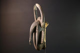 This elegant Baule mask from Côte d’Ivoire is a spiritual artifact used in rituals that bridge the physical and ancestral worlds. Such a mask is typically danced during agricultural festivals, funerals, or rites that ask for protection and fertility. The horns and extended nose of the mask symbolize power, presence, and communication with the spirit realm.