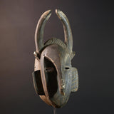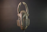 Baule African mask with antelope horns tribal face carving from Côte d’Ivoire wood wall art spiritual sculpture handmade decor- G5440