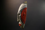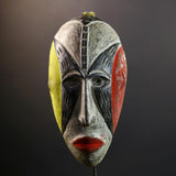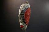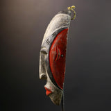 Hand Carved Bega Mask | African Tribal Face Mask in Red Yellow Black | Painted Wall Art Sculpture | West African Cultural Decor-G5293