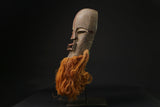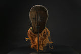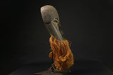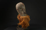 Parallel streaks are dug mask on the surface of the wood, symbolizing plumage and the link with death. The spectacular effect is reinforced by the white/red bichromy,mask which is nevertheless worn out by time. Areas of abrasion and minor gaps are noteworthy. Three variants of this mask Kifwebe mask (pl. Bifwebe) or "Chasing the mort" (Roberts) stand out: the masculine (kilume) usually with a high crest, the feminine (kikashi mask) with a very lowcrest or absent, and finally the largest embodying the (kia ndoshi). This type of mask, still used today, appears to originate from the adjacent area between the northern Luba and the Southeastern . They are worn with a long suit and a long beard made of natural fibers, absent on this copy, during the most important ceremonies.