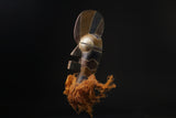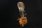 Very beautiful full color facial mask , sumptuous in its style masks but also its age, semi-hard masks wood, deep streaks surrounded by raffia masks , The exterior appearance is marked, attesting to an eventful life. Very nice custom base. Bifwebe masks (singular kifwebe) are part of the ceremonial objects of the company of the same name (bwadi ka kifwebe) which still plays a prestigious role among the Songyés of the East today. The members of this society are the basha masende, holders of the knowledge necessary to interact with the gods. Bifwebe masks are worn with a long costume and a long beard made of vegetable fiber, during the most important ceremonies