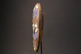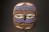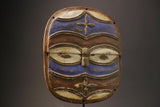This Teke Bateke mask would be a wonderful addition to your home and collection. The Teke origin can be traced back to the 15th century. The artworks of the Teke consist mainly of small fetish statues for personal use, and larger fetish statues for use by the diviner or chief during important village ceremonies. The Teke or Kidumu people are well known for their Teke mask , which are round flat disk-like wooden mask that have abstract patterns and geometric motifs with horizontal lines that are painted in earthly colours, mainly dark blue, blacks, browns and yellow. The traditional Teke mask all have triangle shaped noses.