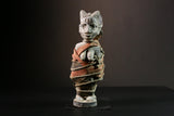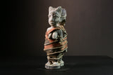 Presenting an extraordinary Luba statue, Waka-Sona, crafted statue from wood and hailing from the vast Luba statue territory in the Democratic Republic of Congo. The Luba statue region, known for its rich cultural history and artistic heritage, extends to Tanganyika and Lake Mweru, reflecting a diverse yet cohesive identity. While the history of the Luba people is marked by conflict, their artistic expressions reveal a harmonious integration of forms that showcases their cultural depth. This striking statue is part of an influential collection of Ex-French African art and serves as a powerful medium for the komien soothsayers, who are believed to be chosen by the spirits, known as asye usu. These figures communicate the revelations of the afterlife, creating a connection between the spiritual and physical realms. The Waka-Sona statue, which means "to be made of wood" in Baoulé, features lower limbs that are muscular and half-flexed, resting on a beautifully engraved base adorned with parallel grooves in champlevé. The character depicted holds a stick, gently caressing his beard in a meditative pose, symbolizing wisdom and contemplation. This unique piece not only serves as an eye-catching collectible but also carries profound spiritual significance for African collectors. Don’t miss the opportunity to own this striking representation of Luba artistry. Add this exceptional Waka-Sona statue to your collection today and celebrate the beauty and depth of African cultural heritage!