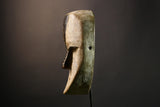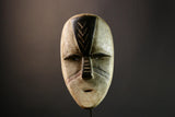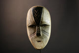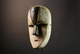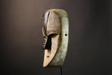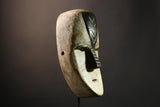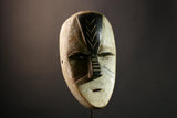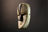 African Authentic Tribal Lega Mask White Face Congo Art Wood Wall Decor Ethnic Carved Sculpture Rare Cultural Artifact- G3595