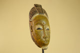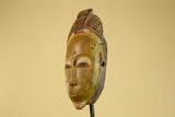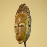African Baule Portrait Mask – Hand Carved Wood with Geometric Crest-G6275