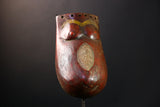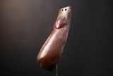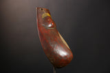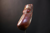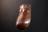 Introducing this stunning African Sculpture, an antique Makonde Pregnant Belly Fertility Mask, a true masterpiece of African art. Originating from the Makonde people of Tanzania and Mozambique, this exquisite mask is crafted from wood and features a striking bright red-orange patina that draws the eye and reflects the vibrancy of its cultural roots. The mask is adorned with scars on the abdomen that symbolize a woman who has given birth, emphasizing themes of fertility, motherhood, and the continuity of life. Traditionally, this bust is worn by masked dancers who imitate the movements and gestures of pregnant women, celebrating the beauty and significance of motherhood within the Makonde culture. This African mask not only serves as a captivating decorative piece but also carries deep cultural meanings that reflect the traditions and values of the Makonde people. Imagine showcasing this extraordinary sculpture in your home, where it will serve as a conversation starter and a stunning focal point in any room. Perfect for collectors of cultural artifacts or anyone seeking to enhance their decor with meaningful art, this antique fertility mask is an exceptional find. Don't miss the opportunity to own this remarkable African sculpture—order now to bring home a piece of heritage and artistry!
