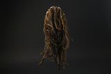 The dances of the ‘Kagle mask’ in the villages of the Dan-Kran mask are wild and aggressive, and involve full body costumes and hooked sticks. The present ‘Kagle mask’, made of hard yet lightweight wood and dyed black,