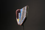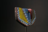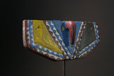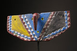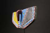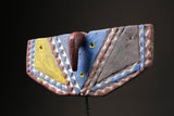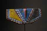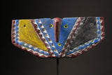 African Wall Decor Plank Mask, painted by the Bwa people from central Burkina Faso and Mali. They are a Gur people, speaking Gur languages. While the Bobo people, also from Burkina Faso, speak the Bobo language, a Mande language. Both these masks are are Bwa Hawk or Owl masks, we believe. The way to tell the difference between a Butterfly and an Owl mask is the Butterfly has a continuation of round circles on the wings and the Owl does not. The Southern Bwa are known for their tall plank masks and tend to use wood to make their masks.