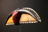 Enhance your home decor with this beautiful African Wooden Wall Mask Decor featuring an Owl Butterfly design. Handmade with skill and care, this piece is a genuine cultural artifact from Burkina Faso. The multi-color mask is made of wood and has a stand for display. The African Mask is a rare and original piece of art that will add a touch of tribal elegance to any room. Its provenance is not available, but it is certain to be a unique addition to your collection. This mask is perfect for those who appreciate African culture and art.