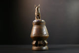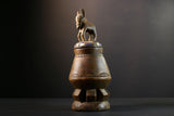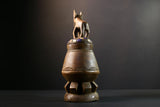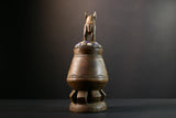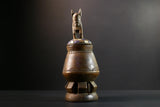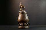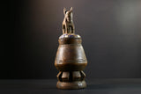 Africa Yoruba ceremonial vessel, carved altar jar with figure and heads, tribal ritual container, vintage ethnic wood shrine sculpture-G5345
