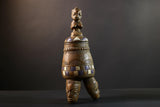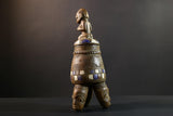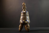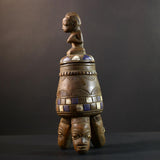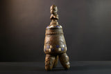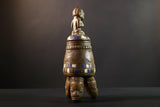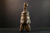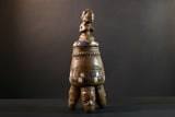 Africa Yoruba ceremonial vessel, carved altar jar with figure and heads, tribal ritual container, vintage ethnic wood shrine sculpture-G5353