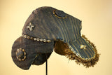 This antique Dan mask presents a powerful traditional design with a deep carved wood face framed by a richly decorated cowrie shell crown and layered fabric panels. The mask shows strong age, tribal repairs, and authentic patina from long cultural use, Measurement-37/29.5/43. Cowries, textiles, and dark tones enhance its presence, making this mask ideal for collectors of African art seeking an original Liberia Dan mask with history and character. Stand not included.