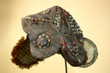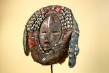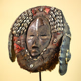 African Antique Dan Mask With Cowrie Shell Crown Fabric Trim Tribal Wood -G6006