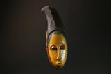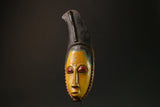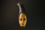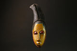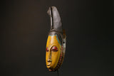 African Baule Antique African Mask Yellow Wooden Wall Hanging Collectible Art-G3086
