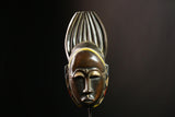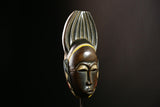 African Baule Mask Tribal Wood Carving Decorative Wall Ethnic Sculpture-G4105