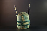 This vibrant African Bolga basket brings together tradition and functionality. Handwoven by artisans in Ghana, this African Bolga basket features rich green and natural straw tones woven in a geometric pattern. Its strong leather handle adds durability and style, making it perfect for shopping, storage, or decorative use.