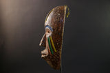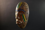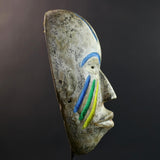 African Fang Ngil Mask, Gabon Tribal Wall Art, Hand-Carved Kaolin Wood Sculpture, Colorful Scarification Decor Mask-G5330
